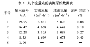 流量計(jì)廠家在出廠檢驗(yàn)**中都把實(shí)測(cè)的幾個(gè)流量點(diǎn)的原始數(shù)據(jù)以表1方式給出,從中可見實(shí)測(cè)的引用誤差都遠(yuǎn)遠(yuǎn)小于*大允許誤差。表1的EMF量程為6m³/h(100L/min),輸出電流為4~20mA;且在滿量程值50%以上的測(cè)量點(diǎn)精度較,而在滿量程值1/3以下測(cè)量點(diǎn)精度低。