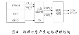 勵磁時序產(chǎn)生電路用于產(chǎn)生勵磁控制信號CON1和CON2以控制方波勵磁時序,其電路原理結構圖如圖4所示。
