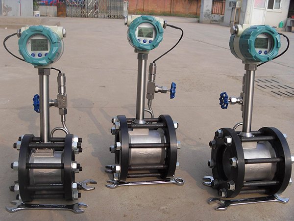 2、溫度補償一體型渦街流量計還帶有溫度傳感器,可以直接測量出飽和蒸汽的溫度并計算出壓力,從而顯示飽和蒸汽的質(zhì)量流量。