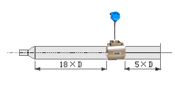 若傳感器安裝點(diǎn)的上游有90°彎并沒有或T形接頭,傳感器上游應(yīng)有不小于20D的等徑直管段,下游應(yīng)有不小于5D的等徑直管段。