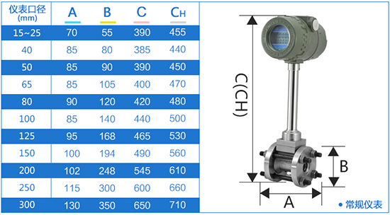 儀表通徑為DN50,英文顯示, 4~20mA電流信號輸出,溫壓補償型