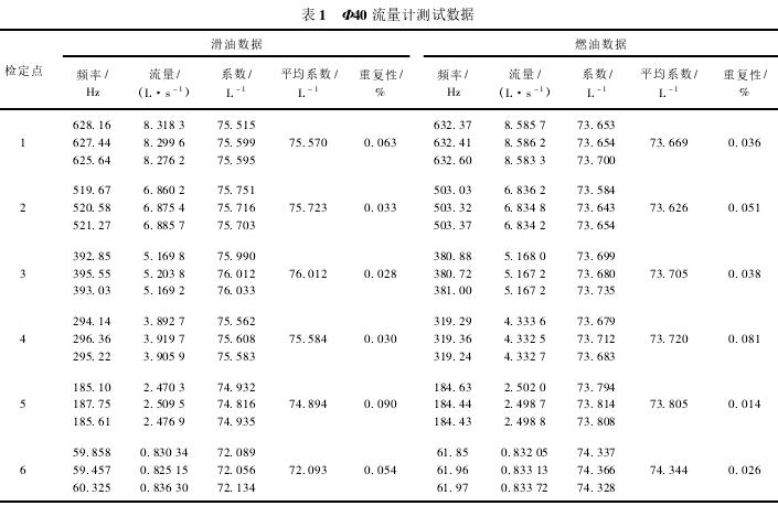 Φ40流量計(jì)測試數(shù)據(jù)如表1所示。