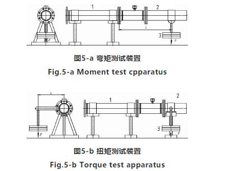 對于高壓機(jī)油流量計(jì)來說,還應(yīng)當(dāng)詳細(xì)說明流量計(jì)所需求的彎曲與扭力力矩的保護(hù)水平。此數(shù)據(jù)是通過試驗(yàn)直接獲得,彎矩測試裝置如圖5-a 所示,直管段1 連接氣體流量標(biāo)準(zhǔn)裝置,在直管段2 預(yù)先確定的力臂L 位置附加垂直方向的力F 而形成彎矩M;扭矩測試裝置如圖5-b 所示,直管段1 連接氣體流量標(biāo)準(zhǔn)裝置,在直管段2 側(cè)面預(yù)先確定的力臂L 位置附加垂直方向的力F 而形成扭矩T。而彎矩與扭矩均是作用于流量計(jì)入口與出口法蘭處。由于此項(xiàng)測試主要針對流量計(jì)強(qiáng)度的校核,為了更有說服力、提高可靠性,故將鋁合金殼體的中低壓渦輪流量計(jì)DN80-G100用于此次測試。而整個(gè)測試過程是將砝碼F 按EN12261 表10 中要求1 倍、2 倍直至做到4 倍(即力矩為3 040 N·m),未發(fā)現(xiàn)流量計(jì)殼體有任何異常變化。而測試結(jié)果表明在施加砝碼F 之前、過后得到的指示誤差與施加砝碼F 之前的指示誤差未有明顯變化。