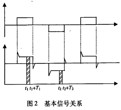 智能濃硫酸電磁流量計一般都采用工頻交流電源供電,其電源電壓的幅值和頻率的變化都會給智能濃硫酸電磁流量計帶來電源性干擾噪聲。對電源電壓的幅值變化,因采用多級集成穩(wěn)壓,一般而言電源電壓的幅值變化對電磁流量的測量精度影響不大。當電源電壓的頻率波動時,雖然其波動范圍有限,但對智能濃硫酸電磁流量計測量精度影響較大。為了解決工頻干擾問題,實現(xiàn)對流體流速感應電勢e柚信號的準確測量,需利用以下基本關(guān)系:①勵磁周期為工頻周期的整數(shù)倍,即勵磁頻率為50/nHz(n為偶數(shù));②正負勵磁下的同相位采樣。圖2是對應低頻矩形波勵磁形式下的典型電勢信號形式,按上述關(guān)系在一個勵磁周期下,若假設(shè)t。和t:點為工頻干擾的等效干擾點,且采樣寬度T=T1=T2,則e –ab的基本算式為:,