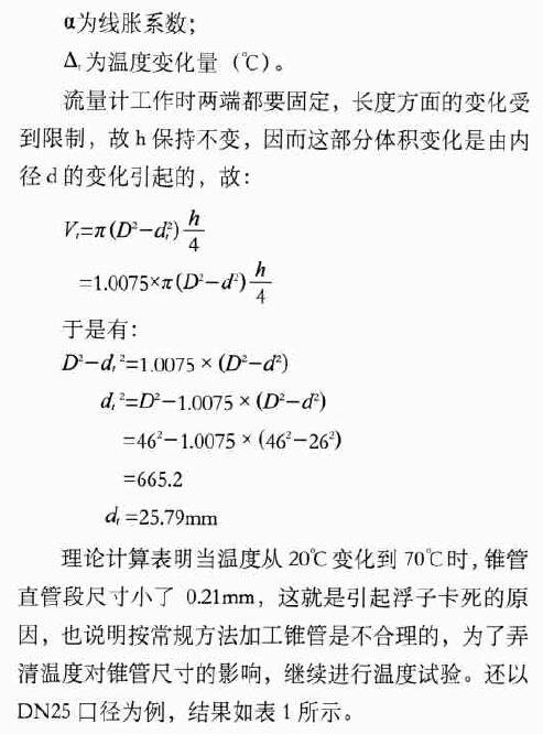 將上述結(jié)論加以推廣,應(yīng)用于耐腐型浮子流量計(jì)的所有口徑,結(jié)果是令人滿意的,產(chǎn)品質(zhì)量完全滿足用戶的現(xiàn)場條件,產(chǎn)品性能優(yōu)良。所以說“合理的工藝過程是產(chǎn)品性能的保證”。