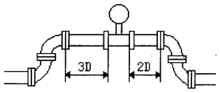 縱端面采用特殊形線的變徑整流器(己申報(bào)****),具有整流,提高流速及改變流速分布的多重作用,其結(jié)構(gòu)尺寸小,長(zhǎng)度僅為工藝管內(nèi)徑的1/3,可以直接卡裝在儀表的兩端,不僅不需要另外附加直管道,而且可以降低儀表對(duì)上游直管道的要求。實(shí)驗(yàn)表明:儀表上游阻力件為一個(gè)平面內(nèi)的兩個(gè)90°彎頭 在一般情況下,鍋爐蒸汽流量計(jì)上游側(cè)應(yīng)加裝大于20倍管道內(nèi)徑長(zhǎng)度的直管道,而鍋爐蒸汽流量計(jì)加裝了變徑整流器大大降低了對(duì)上游測(cè)直管道長(zhǎng)度的要求,其阻力遠(yuǎn)遠(yuǎn)小于傳統(tǒng)的變徑管。更主要的是,可使下限流速降為原來的1/3,量程比提高到15:1以上。