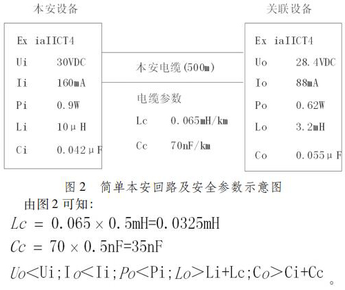 通過(guò)計(jì)算可知,本回路的安全參數(shù)均滿(mǎn)足不等式(1) ~ (5) ,因此本回路能通過(guò)本安回路計(jì)算,可以直接用于防爆區(qū)。