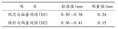 1)由上表可以看出,閥芯與閥套間隙(D1)、閥桿與閥套間隙(D2)明顯小于標準值,導(dǎo)致運行時出現(xiàn)局部卡澀現(xiàn)象。