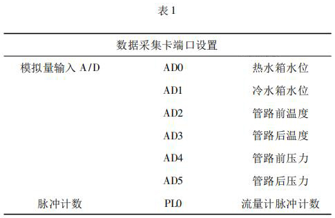 數(shù)據(jù)采集系統(tǒng)由工控機(jī)、煤油流量計(jì)以及數(shù)據(jù)采集卡組成。 4000 次冷熱沖擊試驗(yàn)要求在在*大流量 qs 條件下運(yùn)行,對(duì)流量數(shù)據(jù)的采集用到煤油流量計(jì)及數(shù)據(jù)采集卡。煤油流量計(jì)采集管路流量,數(shù)據(jù)采集卡將煤油流量計(jì)采集到的數(shù)據(jù)反饋給工控機(jī)系統(tǒng)。過(guò)程中,試驗(yàn)管路水溫以及水箱水位的采集控制也是通過(guò)數(shù)據(jù)采集卡反饋給系統(tǒng)控制。試驗(yàn)過(guò)程用到的數(shù)據(jù)采集卡采用研華生產(chǎn)的PCI - 1711。PCI - 1711 是一款多功能 PCI 總線數(shù)據(jù)采集卡,具有 16 路單端模擬量輸入功能、2 路 12位模擬量輸出功能、16 路數(shù)字輸入和 16 路數(shù)字輸出功能、計(jì)數(shù)器功能等。為保證冷熱沖擊試驗(yàn)結(jié)果的準(zhǔn)確性,嚴(yán)要求嚴(yán)格控制管路流量以及管路壓力。因此,管路設(shè)置前后管路溫度、冷熱水箱水位以及管路壓力的采集,管路流量根據(jù)煤油流量計(jì)脈沖計(jì)數(shù)進(jìn)行采集,其數(shù)據(jù)采集卡端口設(shè)置如表 1 所示。
