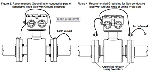 如前圖所示,當靠近氫硫酸流量計的管道不能提供良好的流體電連接時,需要接地環(huán)或接地電極。也就是說,管道內(nèi)襯或由非導電材料制成。