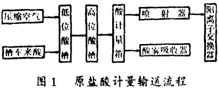 用陽離子交換樹脂制水要用酸作為再生劑。國內(nèi)電廠多選用鹽酸。鹽酸用傳統(tǒng)的箱式計量方法,使系統(tǒng)操作復(fù)雜,安全性能降低,還會嚴(yán)重污染環(huán)境。一種用管道式流量計代替鹽酸計量箱的負(fù)壓輸送鹽酸系統(tǒng)能克服上述缺點(diǎn)。該系統(tǒng)自運(yùn)行以來,使用情況良好,維護(hù)方便,受到工人們的歡迎。