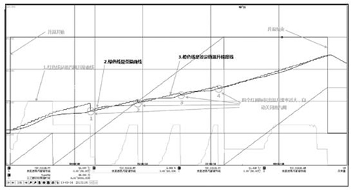 全過程升溫曲線見圖 2,從圖 2 可以看出,通過上述工藝參數(shù)的設(shè)定,從升溫開始到升溫結(jié)束,管道流量計溫基本上是按照溫升梯度進行升溫,當(dāng)出現(xiàn)溫升速率太快時,蒸汽閥自動關(guān)閉,無需人工參與,可以自動控制管道流量計料液溫度的平緩上升,實現(xiàn)脫溶單元操作自控運行。
