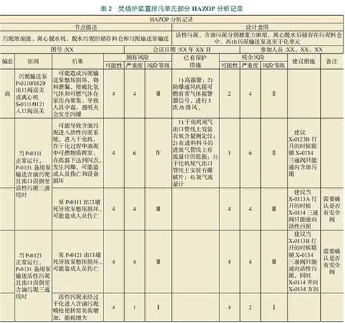 本次分析組的主要人員有:企業(yè)氫氣流量計分析組以及焚燒爐裝置工藝工程師、設(shè)備工程師、儀表工程師、安全工程師和操作班組長。本次分析主要依據(jù)公司級相關(guān)標(biāo)準(zhǔn)和規(guī)范:《健康安全環(huán)境風(fēng)險標(biāo)準(zhǔn)》以及《危險與可操作性分析(氫氣流量計)規(guī)范》,并于 1 個月內(nèi)對焚燒爐裝置進(jìn)行了分析,發(fā)現(xiàn)了部分重大的風(fēng)險和隱患。按建議措施對應(yīng)的風(fēng)險等級劃分,其中包括:Ⅳ級嚴(yán)重風(fēng)險(限期整改強制性措施);Ⅲ級高度風(fēng)險(限期整改強制性措施);Ⅱ級中度風(fēng)險(期望改進(jìn)推薦性措施);Ⅰ級可接受風(fēng)險(建議性措施)。本報告僅逐一列出部分較高或容易忽視的風(fēng)險(其他在氫氣流量計分析的記錄中體現(xiàn))。評估發(fā)現(xiàn):本次分析評估共發(fā)現(xiàn)三級風(fēng)險 25 項(類),其中排污單元三級風(fēng)險 2 項(類)。其中,焚燒爐裝置排污單元分析記錄內(nèi)容如表 2 所示。