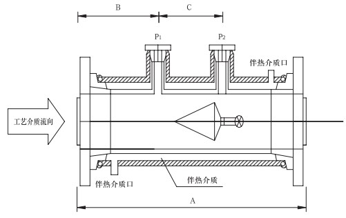 專門為測量要求夾套管伴熱工藝介質的流量而設計,特別適合易結晶介質及溫控要求嚴格的場合。鋼制夾套管法蘭標準:SHT501-1997。