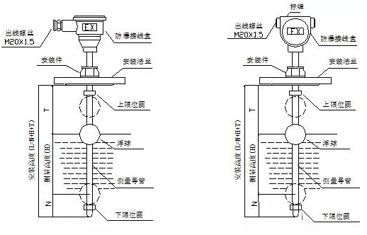 2、安裝前需確認被測液體內(nèi)及液位計周圍不應(yīng)有鐵磁性雜質(zhì),且介質(zhì)比重應(yīng)大于浮球的比重,否則會影響液位計正常工作。