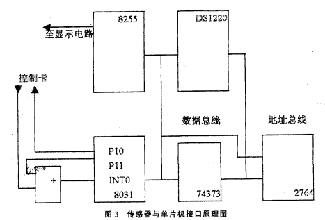 圖3中,單片機8031、74373和2764組成單片機核心電路,8255為顯示電路接口,DSl220為不揮發(fā)RAM,用其存儲流量可保證斷電后流量不丟失。工作時8031每隔一個采樣周期先啟動定時器T1,然后通過PIO引腳向控制卡發(fā)控制信號,換能器發(fā)一聲波經(jīng)被測污水反射由換能器接收,控制卡的邏輯輸出端輸出一脈沖,脈沖信號經(jīng)過或門進入INTO腳,引起中斷請求。在中斷服務程序中從定時器中取出定時值,計算出對應的液位。由于傳感器在發(fā)出聲波后,在4MS以內(nèi)會產(chǎn)生無用的盲區(qū)脈沖,所以在P10向控制卡發(fā)控制脈沖的同時,通過P11引腳發(fā)一個4ms的高電平封鎖信號,防止“盲區(qū)脈沖”通過或門進入INTO引腳。