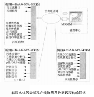 本文介紹的水體污染狀況在線監(jiān)測(cè)及數(shù)據(jù)遠(yuǎn)程傳輸網(wǎng)絡(luò)可以連續(xù)、自動(dòng)監(jiān)測(cè)排污口的污水流量和水質(zhì)參數(shù),既可以分別顯示污水流量的瞬時(shí)值/日平均值/月平均值、pH/溶解氧/電導(dǎo)率/濁度/水溫/COD/TOC/NH4-N/**3-N等常規(guī)參數(shù),也可以實(shí)時(shí)計(jì)算污染物排放總量并經(jīng)公共通信網(wǎng)絡(luò)(電話線路)傳輸至區(qū)(縣)、市級(jí)的監(jiān)控中心,在轄區(qū)的電子地圖(GIS)上動(dòng)態(tài)顯示各排污口的*新數(shù)據(jù),是環(huán)保、市政、水利等監(jiān)理部門實(shí)時(shí)觀測(cè)轄區(qū)水質(zhì)變化情況的現(xiàn)代化管理工具。系統(tǒng)組成如下: